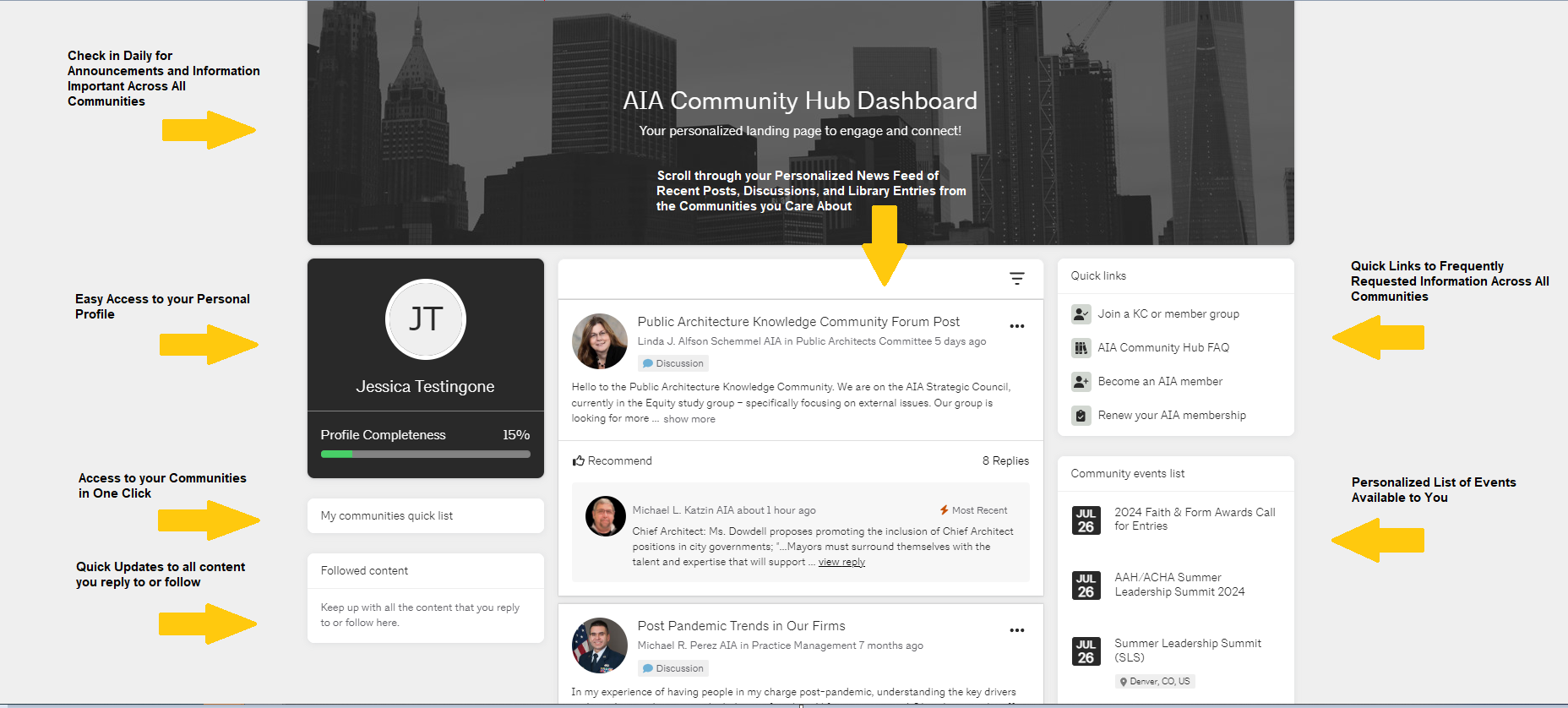 AIA Community Hub will go live on August 14th! Let's take a look at our new personalized member landing page for a one-stop summary of all activity that matters to you!