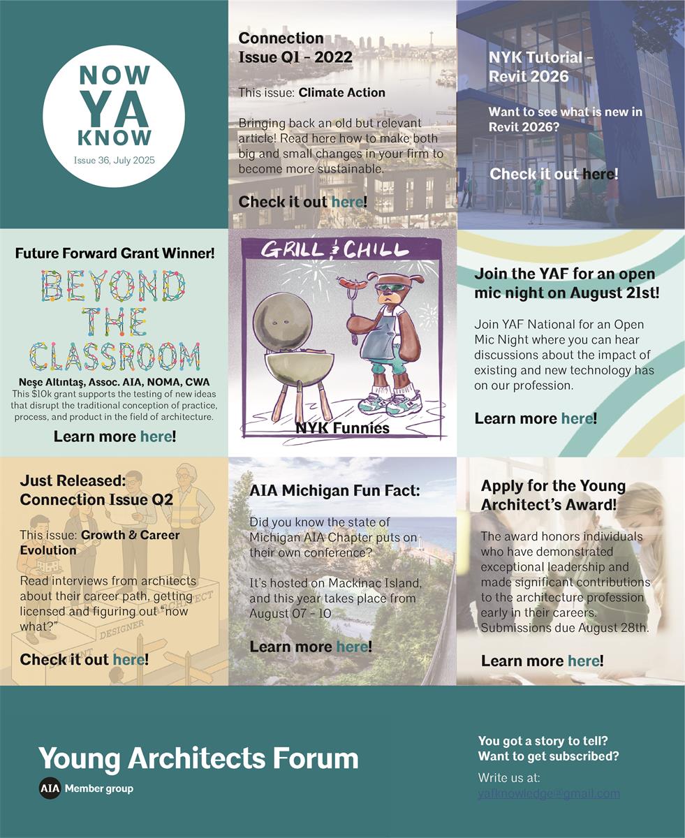 A PDF newsletter to share information, events, and ideas. It also doubles as a report-out to AIA constituents. All links in the document are live.